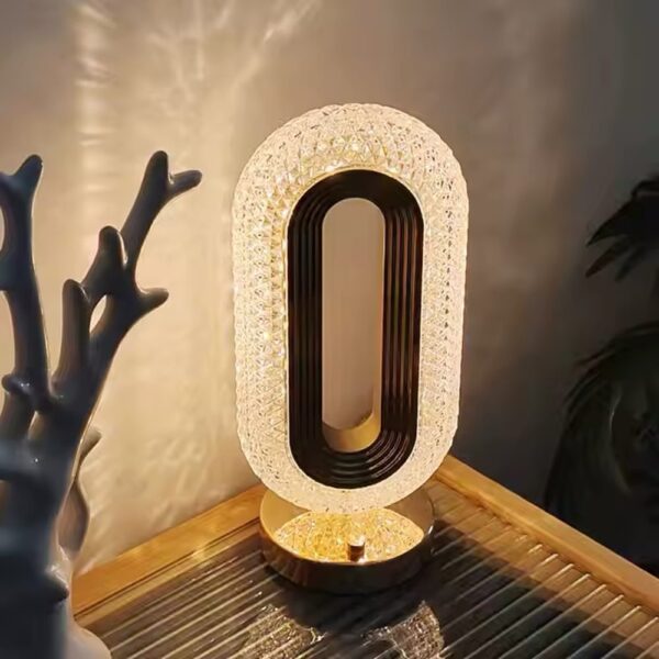 A stylish LED lamp with a crystal-textured design, offering three lighting modes—white, warm, and natural—to create the perfect ambiance for any space.